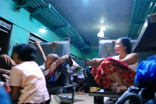 The bus was leaking at some places though... Hannah had water dripping on her head for awhile. Along the way I saw Petronas petrol stations as well as CIMB banks. It was flooding at some places but business was usual for the roadside sellers (except that at some places they were knee-deep in water). They served coke, biscuits, juice, water and blankets on the bus which is already better than most bus journeys I take in Malaysia. We stopped for dinner somewhere.
